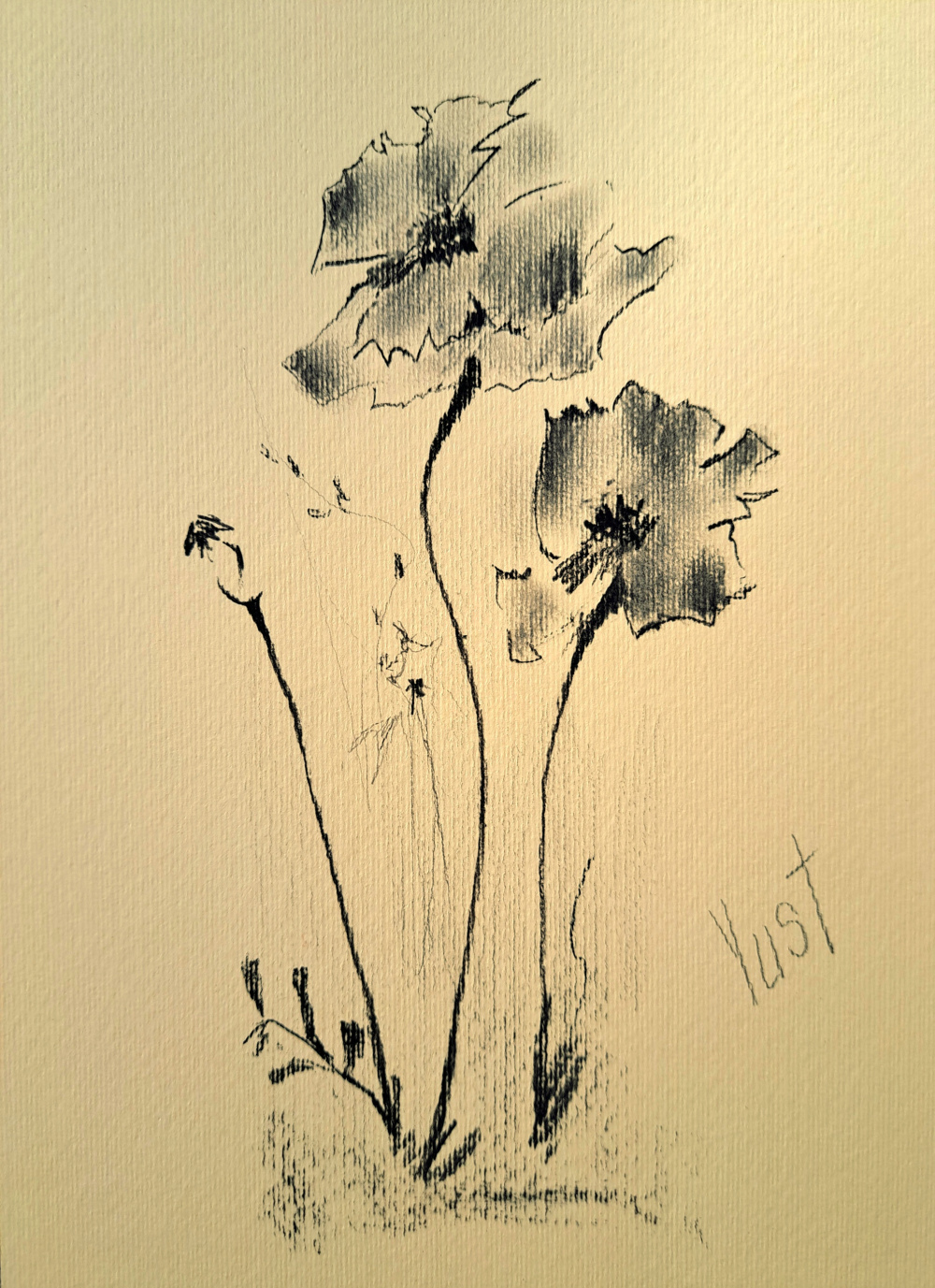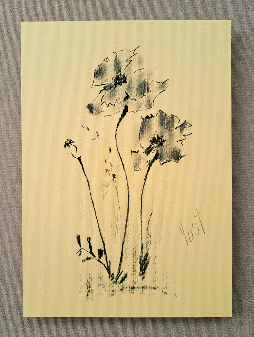 Technik: Kohle auf hellgelbem strukturiertem Künstlerpapier
