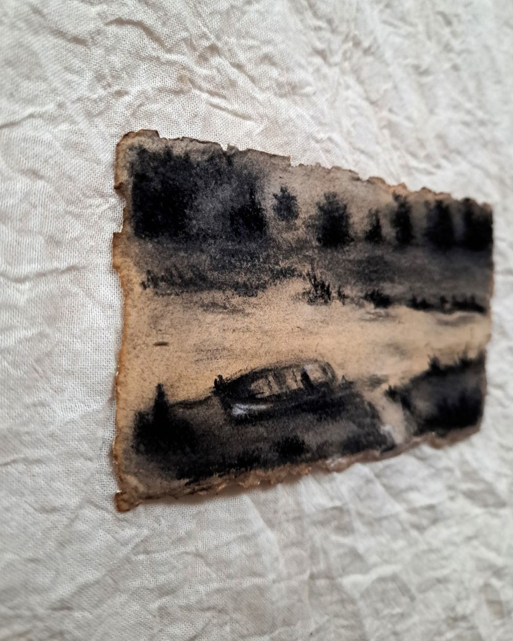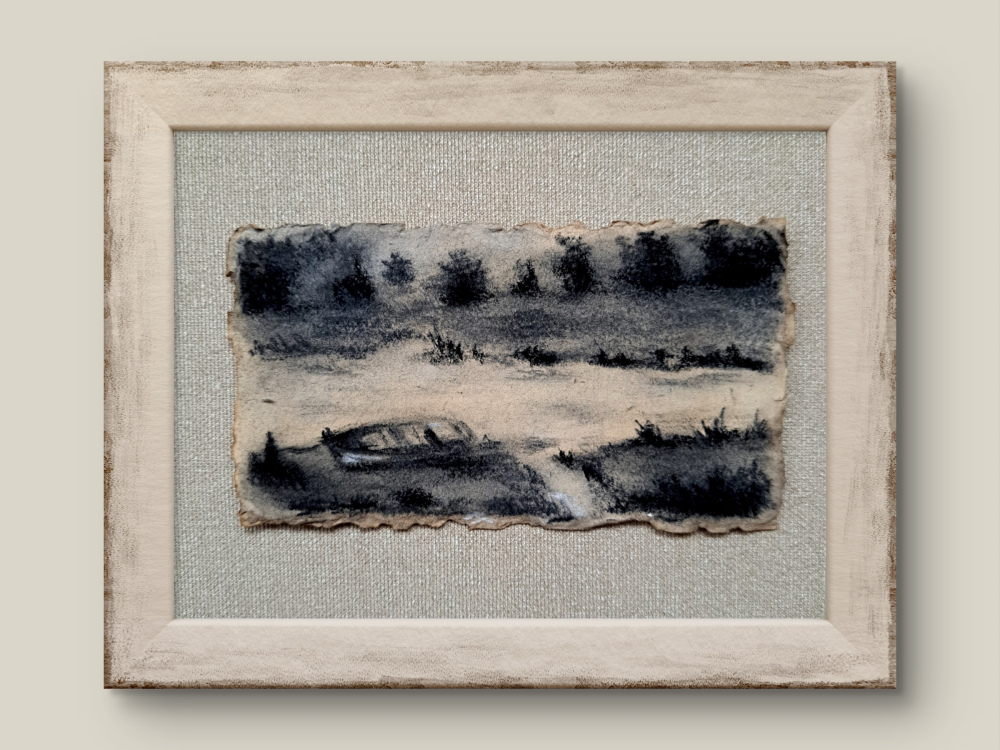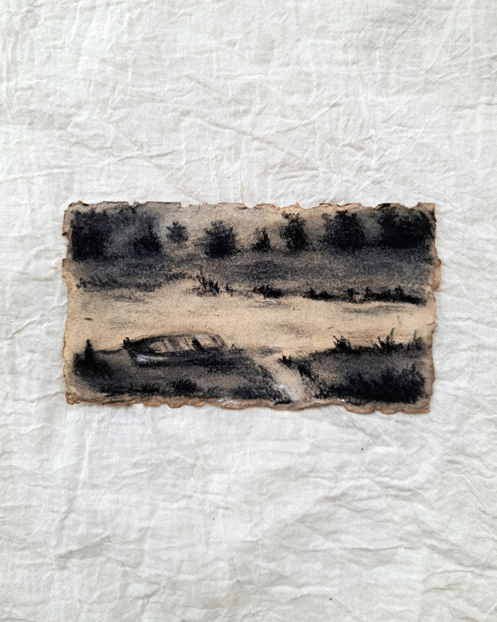 Leises Wasser als feine Kohlezeichnung: