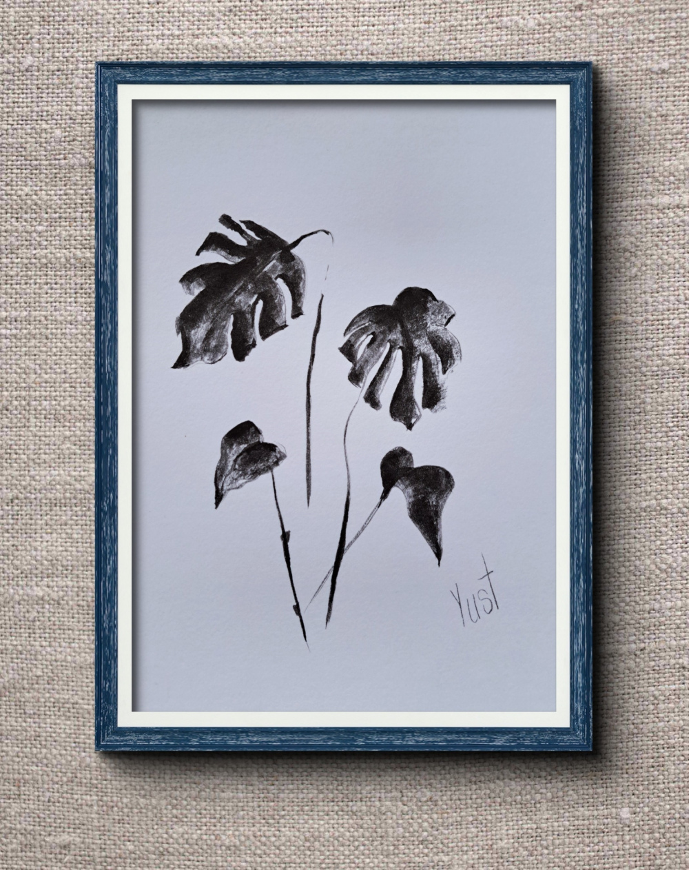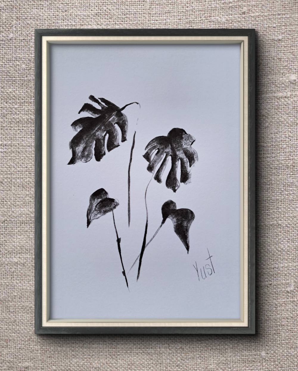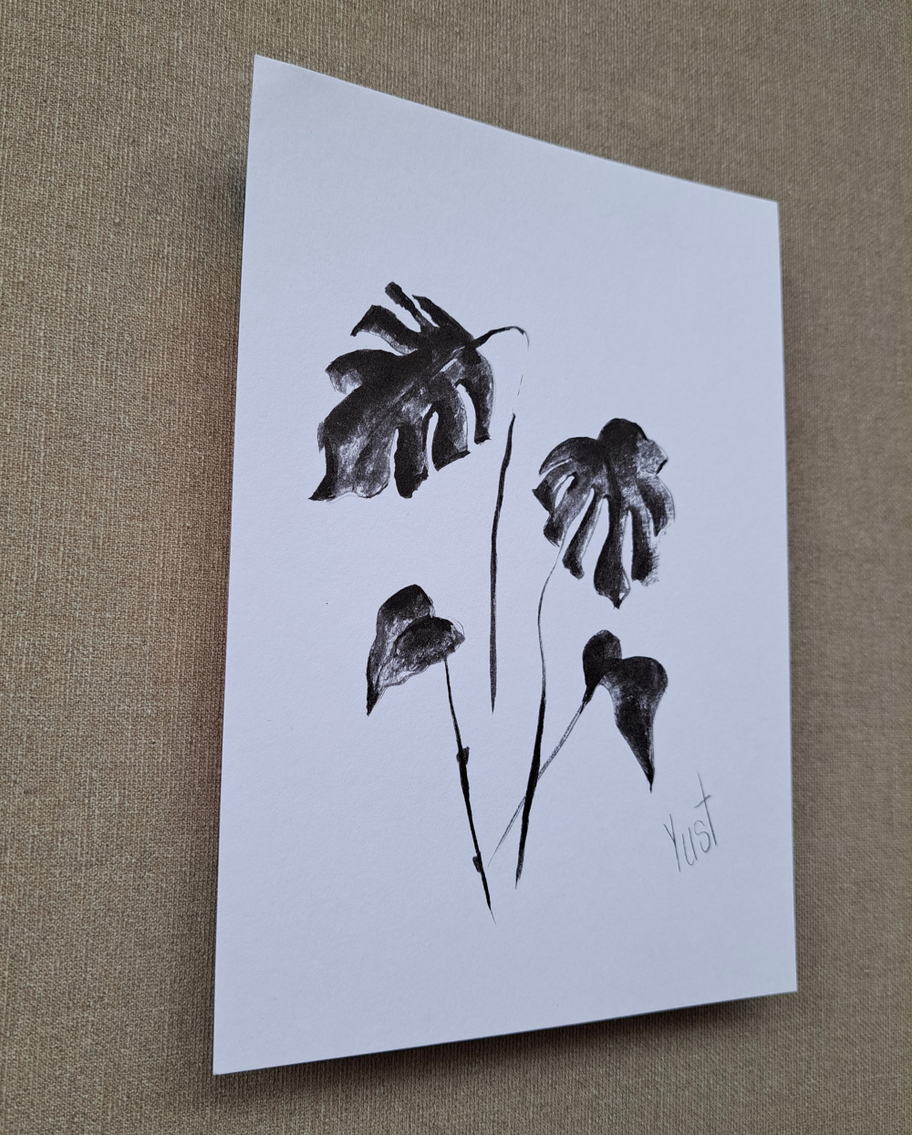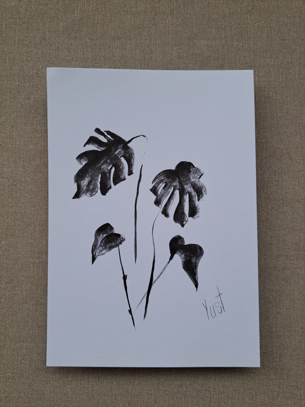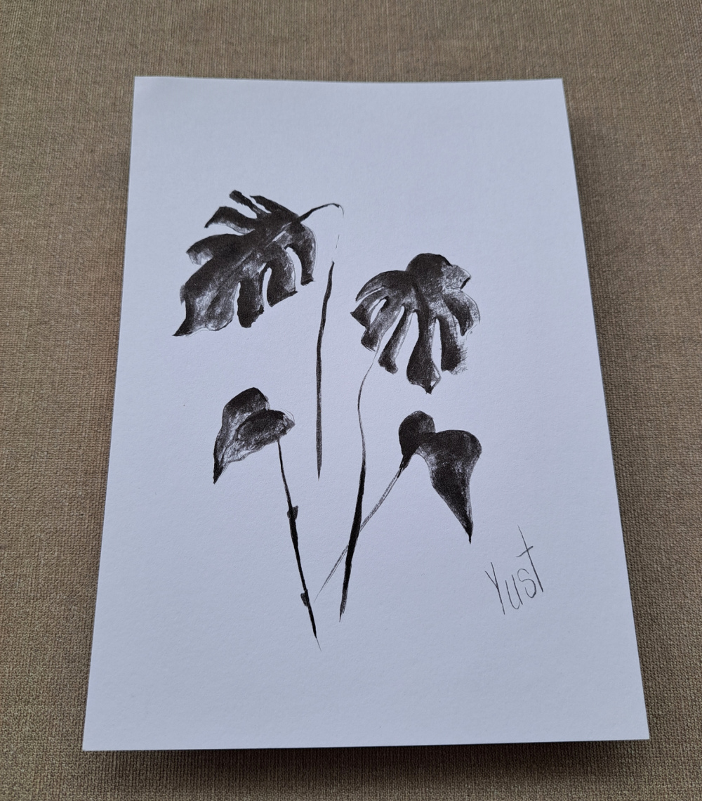 Blätter, die tanzen – Tinte, die träumt. Diese Zeichnung ist wie ein kleiner Spaziergang durch den Dschungel, nur ohne Mücken und mit viel Stil. Die Monstera aus Tinte zeigt hier ihre schönsten Seiten.