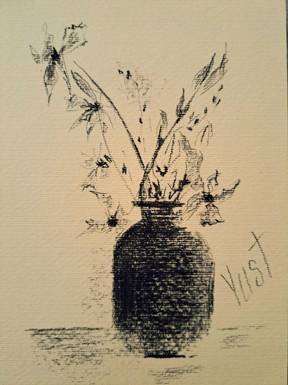 Technik: Kohle auf hellgelbem strukturiertem Künstlerpapier